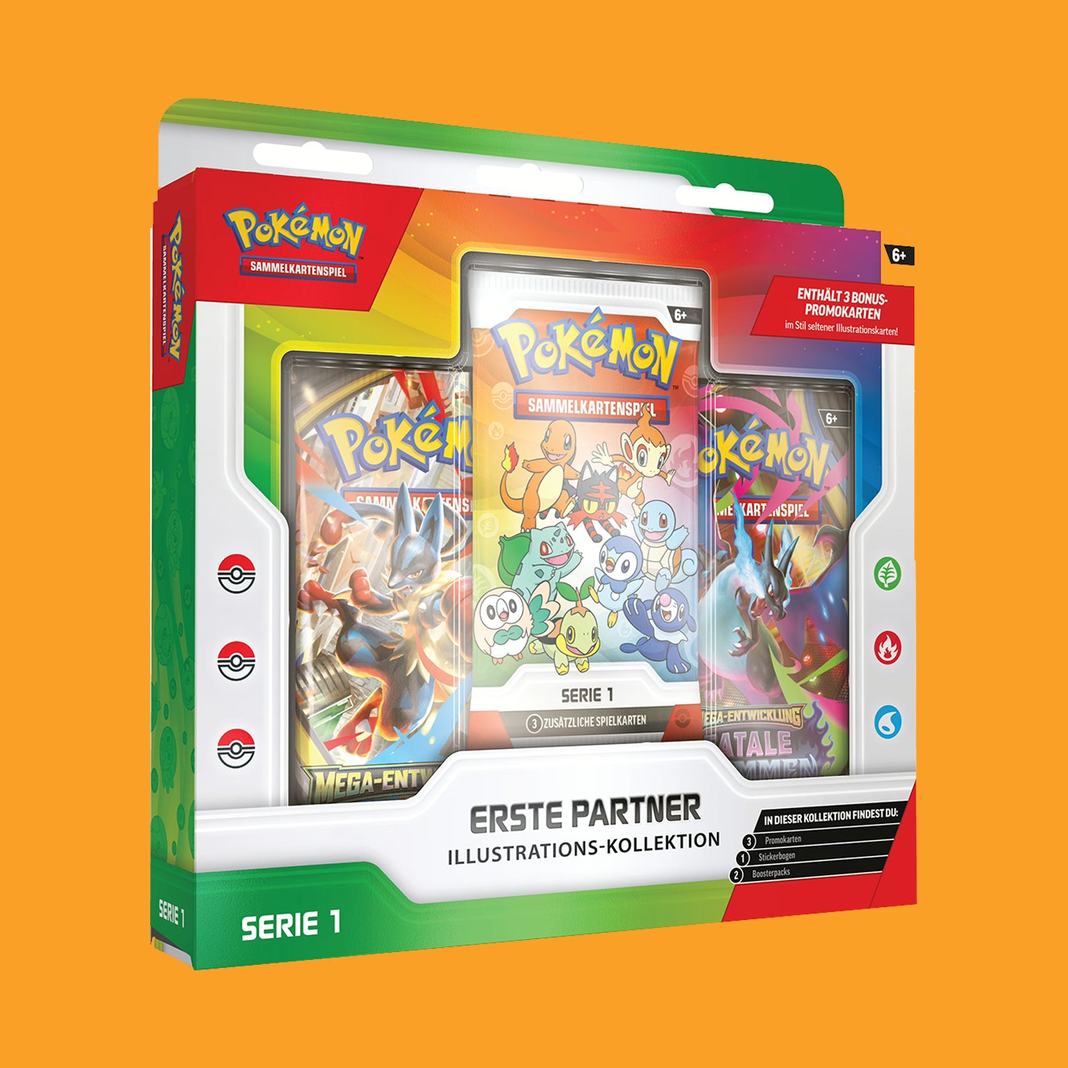 Die Illustrations-Kollektion Erste Partner: Serie 1 des Pokémon-Sammelkartenspiels enthält: