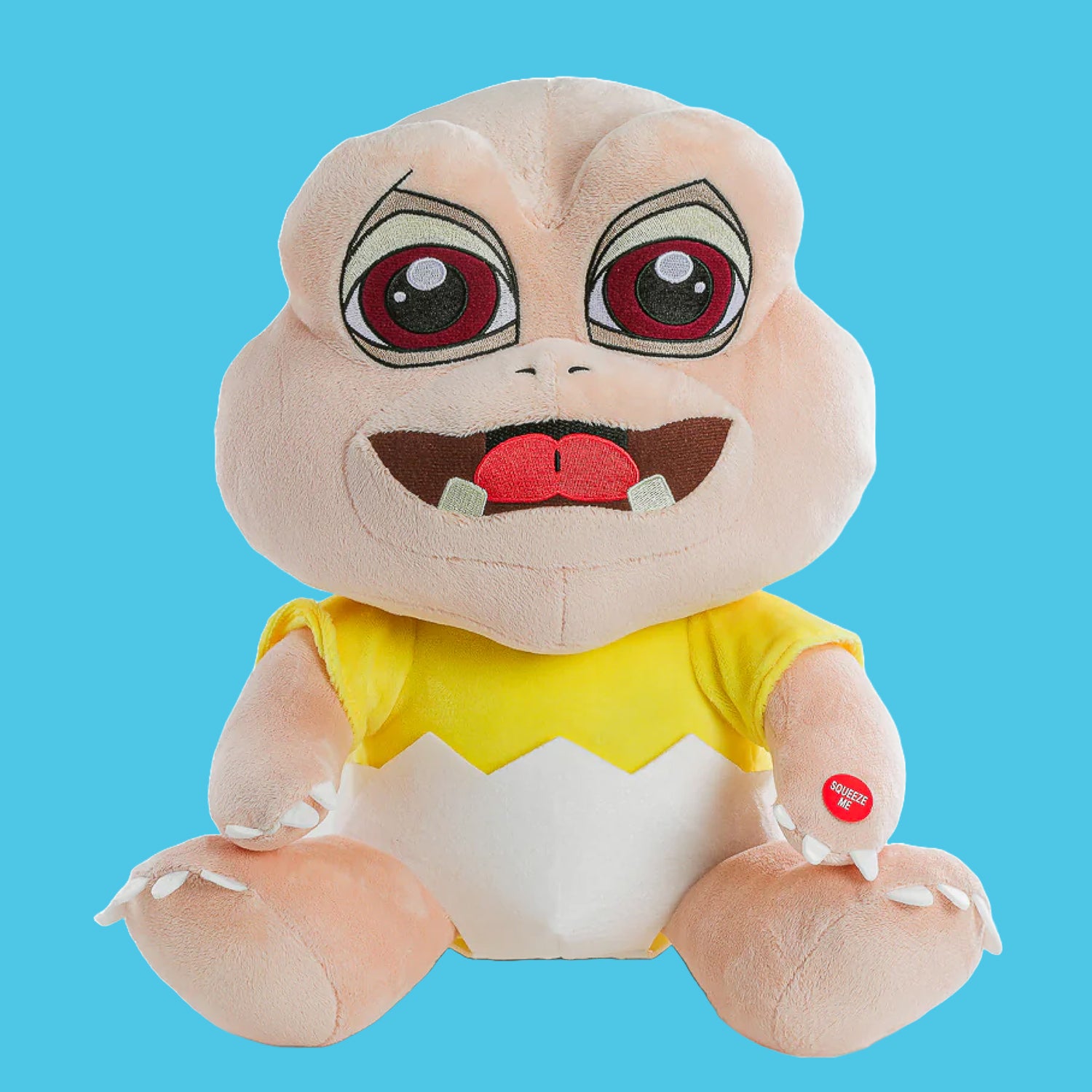 Baby Sinclair als 33cm großes Plüsch, das die besten Sprüche raushaut. Nur die Bratpfanne müsst ihr euch selber auf den Kopf schlagen!